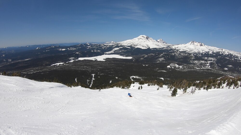 Over 4,200 acres are available to explore, and the terrain changes in an almost surreal way as you make your way down from the summit, starting with jagged, volcanic rock features and open bowls, filtering into thinly wooded glades, and then finally dense woods and tree-cut runs. On days when the backside is open, you could ski for miles and not see another skier or rider. The views down into the forests below are expansive, and other Cascade peaks such as the Three Sisters and Diamond Peak are plainly prominent from parts of the resort.