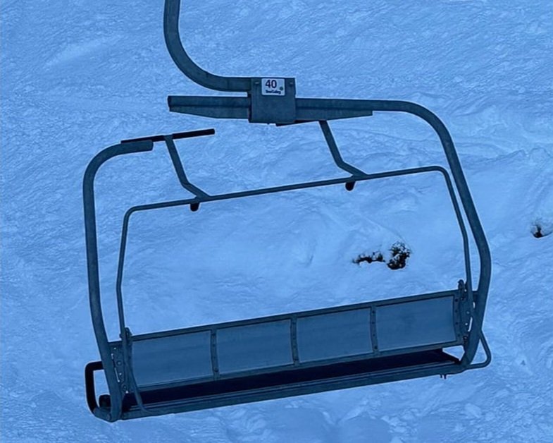 A chair detached from the Honey Pot Hoist double chairlift at Mount Bohemia on February 7, 2025; this was the third Riblet double chairlift to experience such an incident this season. Source: Conor Smith | Facebook