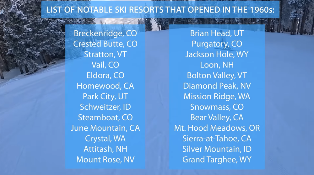 The United States is home to over 480 ski resorts, offering mountains of various locations, shapes, and sizes. What you may not realize, though, is that essentially all of these resorts were built over five decades ago.