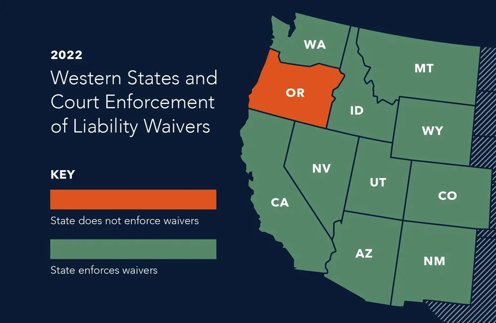 As of 2022, Oregon is the only Western state that does not enforce outdoor recreation liability waivers.