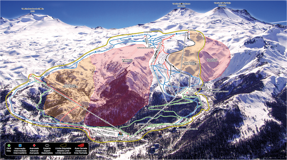 This all being said, entering these areas should not be taken lightly. They are genuinely dangerous if approached without caution; the lack of warning signs off-piste means it’s easy to stumble into serious hazards such as unsendable cliffs, rocks, natural divots, thick woods, or even streams. And perhaps most notably, these areas are especially susceptible to avalanches, and as is common throughout South America, avalanche risk can change even throughout a single day, with afternoons being especially risky. As a result, it’s critical to check the most up-to-date forecasts before tackling the freeride areas, and we highly recommend bringing equipment such as an avalanche beacon, shovel, and probe. It’s also worth noting that some especially appealing-looking terrain is permanently closed by the resort due to safety hazards; while some skiers and riders ignore these closures, they’re in place for good reason and not worth the risk.