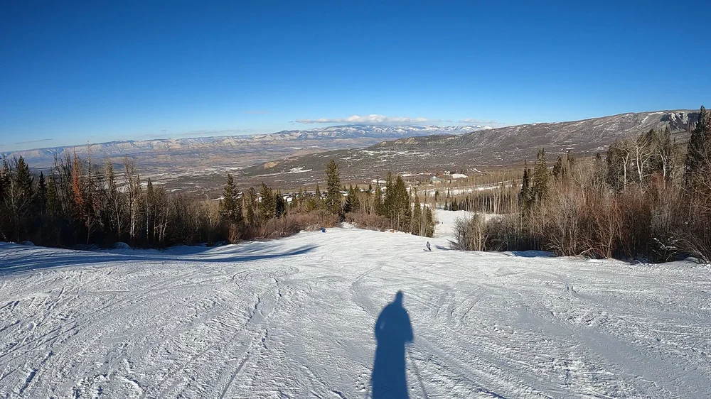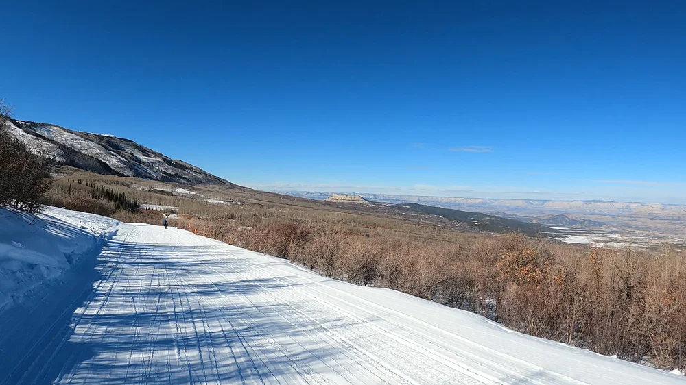 Located on the northern slope of the Grand Mesa, which is billed as the largest flat-top mountain in the world, Powderhorn provides expansive views into the valleys and red-rock desert landscape carved out by the Colorado river and its tributaries. To the skier’s left, an arm of the mesa wraps around the flank of the resort, cutting off views of major population centers and leading to a feeling of isolation. That said, because of the nature of a Mesa, you never feel like you’re truly on a mountain peak, and the resort lacks the sweeping 360 degree views that would accompany it.