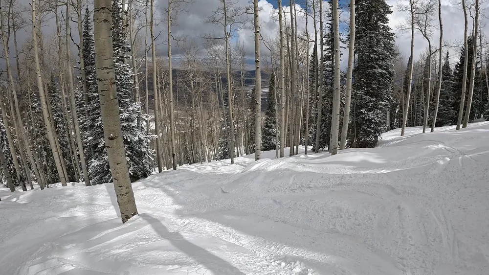 If you really want tougher terrain, you’ll be consistently spending time in the West End. The West End maintains the best terrain on the mountain, with a wider variety of moguled black diamond runs and a solid offering of steep glades. The standout here are the boulder fields dotted near the lift path, which provide some opportunities for deep pivot turns and can act as smaller cliffs to launch off of. Of course, since these tend to stick further out of the ground, they’re more likely to be closed during the early and late season.